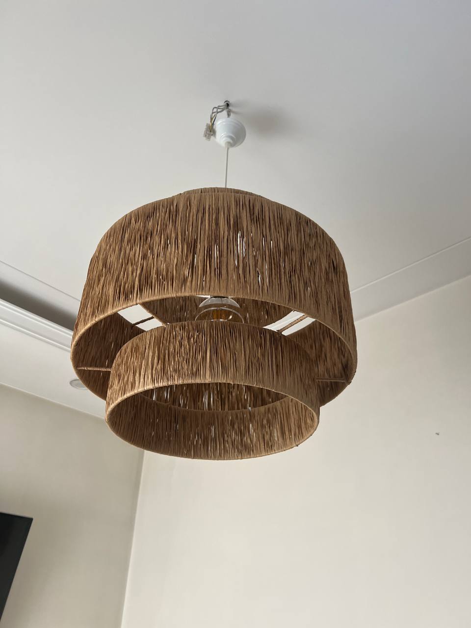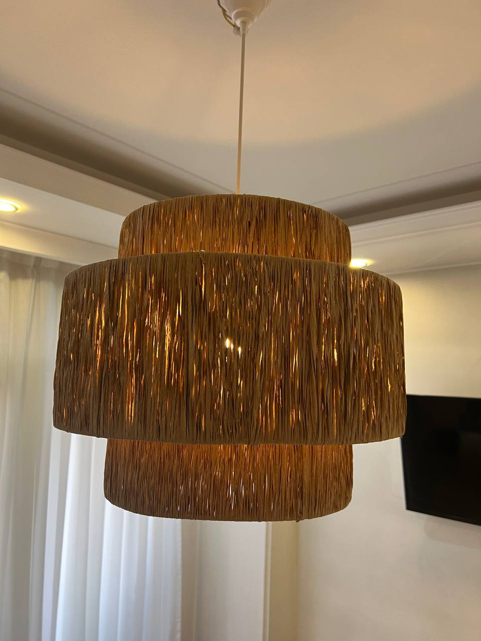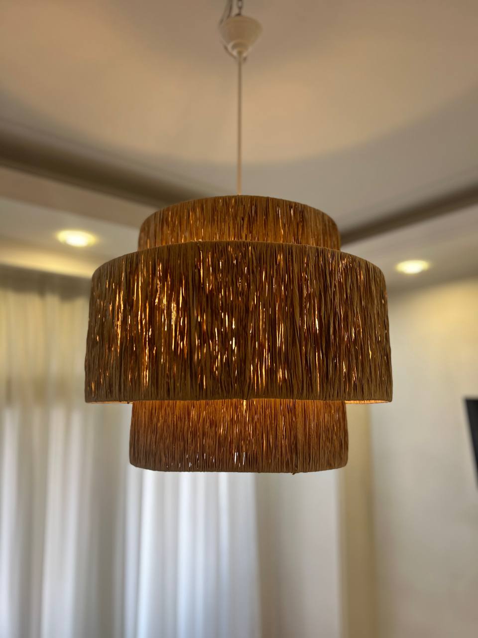 لوستر سه طبقه رافیا بافته شده با رافیای نواری یکی از شیک ترین لوسترهامناسب فضای شما به همراه سیم و اتصالات قطر بزرگ 50 قطر کوچک 35 و ارتفاع 38 اماده سازی 5تا7روز کاری