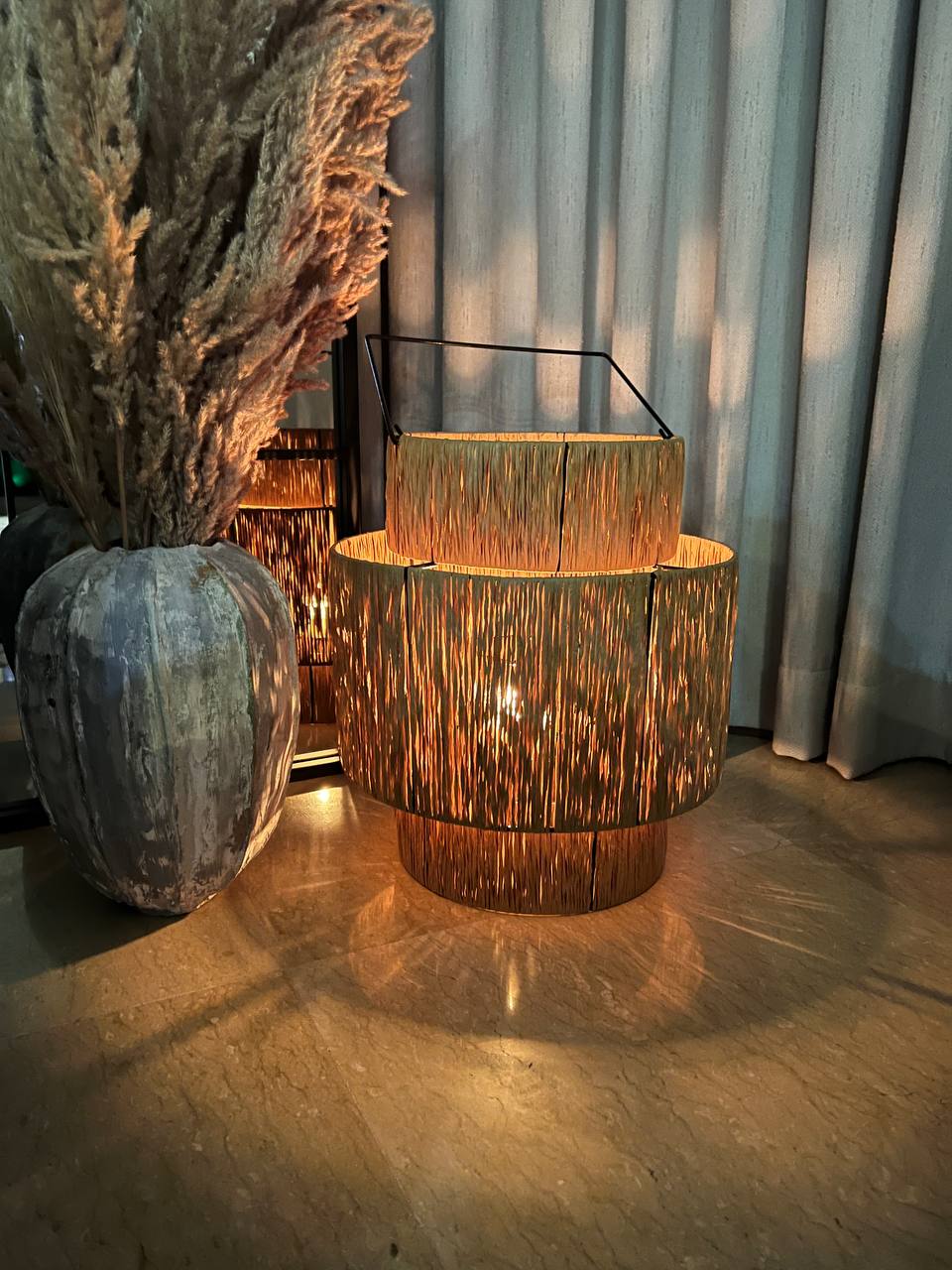 فانوس رافیا مدل سه طبقه بافته شده با رافیا نواری                                                                                                    قطر بزرگ35 و قطر کوچک 25و ارتفاع 40                                                                                                               اماده سازی 5تا 7 روز کاری