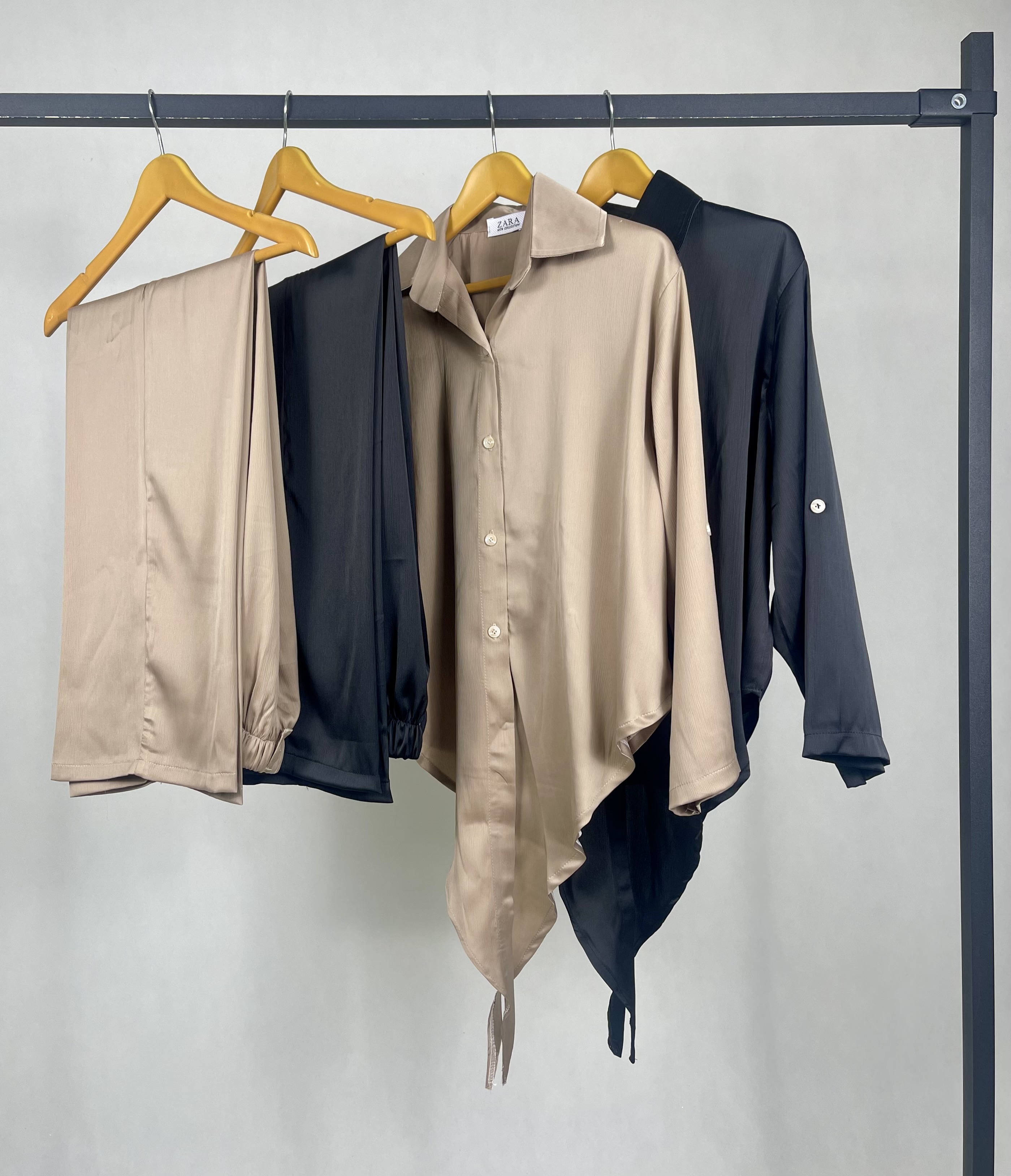 یکی از دغدغه هایی که ما خانم های ایرانی همیشه تو مهمونی ها و دورهمی خانوادگی باهاش مواجه ایم پوشیدن لباسه.یه لباسی بپوشیم که هم برای بیرون مناسب باشه هم وقتی وارد مهمونی میشم لازم نباشه عوضش کنیم .این ست دقیقا همون چیزی که مدنظرمونه.جنس براق و نرم و پارچه ریزش دار ظاهر شیک توی بیرون بهمون میده و ظاهر ساده و گره ای بودن شومیزش دقیقا مناسب یه مهمونی ساده است که بدرخشیم توی مهمونی