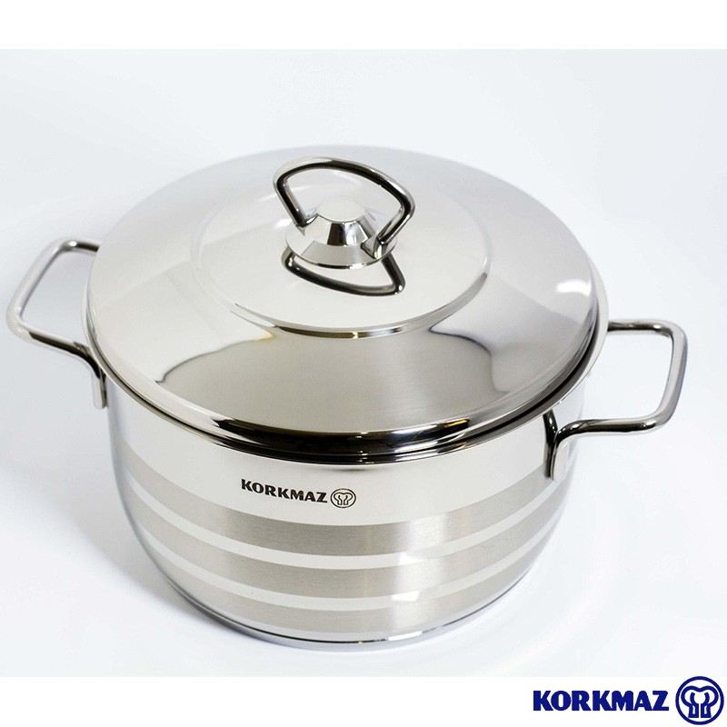 ورق استیل ضد زنگ INOX که در محصولات کرکماز به کار میرود، مرغوبترین نوع استیل است که ترکیبی از فولاد و کروم و نیکل بوده و در طول زمان ظاهر براق و شکل خود را حفظ میکند. این نوع استیل، استیل کروم-نیکل 10/18 نامیده میشود و به صورت مادامالعمر ضد زنگ و خوردگی است و فرسایش نمییابد. به دلیل عدم وجود پوشش خاص درون ظروف کرکماز، این ظروف کاملا بهداشتی و سالم هستند و بهترین انتخاب برای پخت و پز به شمار میآیند. به علاوه، کفهی سه لایهی چدنی سرویسهای قابلمه کرکماز دارای کپسولهای حرارتی است که موجب پخش یکنواخت و موثرتر حرارت میشود و در انرژی و زمان پخت و پز صرفه جویی به عمل میآورد. دستهها و برآمدگی در قابلمهی کرکماز حرارت را جذب نمیکند و همیشه خنک است و بنابراین باعث سوختن دست نمیشود. ظروف کرکماز نچسب و نسوز هستند و بنابراین برای پخت غذاهای بدون آب و روغن و نیز مناسب هستند.
