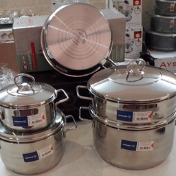 • مشخصات سرویس 9 پارچه: سایز قابلمه 16 سایز قابلمه 20 سایز قابلمه 24 مای تابه درب دار مای تابه تک دسته