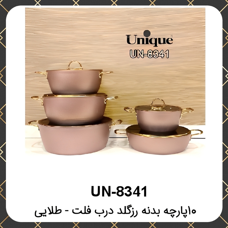 سرویس قابلمه گرانیت یونیک ۱۰پارچه رزگلد درب فلت طلایی Unique UN-8341