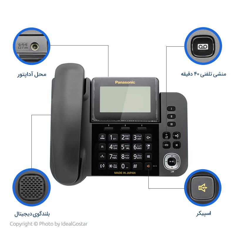 تلفن «KX-TGF320» محصولی حرفهای از شرکت «پاناسونیک» و مناسب برای استفادههای خانگی و اداری است. این تلفن از ظاهری زیبا بهره میبرد. بازهی فرکانسی تحت پوشش تلفن بیسیم KX-TGF320 برابر با 1.88 – 1.9 گیگاهرتز است. به یاری فرکانس 1.9گیگاهرتزی این تلفن، نویزی در دستگاههایی مانند مودمهای بیسیم یا تلویزیون ایجاد نخواهد شد. صدای منتقلشده توسط این تلفن بسیار باکیفیت و واضح است. KX-TGF320 از سه قسمت شامل تلفن، پایه و گوشی تشکیل شده است. این پایه وظیفهی شارژ گوشی را بر عهده دارد. ابعاد کلیدها بزرگ طراحی شدهاند تا سالمندان نیز در استفاده از آن با مشکل مواجه نشوند. شرکت پاناسونیک تلفن و گوشی تلفن بیسیم KX-TGF320 را به نمایشگرهای 3.4 و 1.8 اینچی، برای نمایش شماره، تجهیز کرده است. این دو نمایشگر میزان شارژ موجود در تلفن، میزان آنتندهی و شمارههای دریافتشده را نمایش میدهند. بهمنظور دید بهتر، میتوانید صفحهنمایش را به بالا یا پایین خم کنید. تلفن KX-TGF320 از قابلیت دفترچهی تلفن هم بهره میبرد و ذخیرهی 100 مخاطب را امکانپذیر کرده است. تلفن و گوشی تلفن پاناسونیک مدل KX-TGF320 انرژی مورد نیاز خود را از طریق دو باتری Ni-MH سایز نیمقلمی AAA تامین میکنند. به کمک این باتریها میتوان تا 17 ساعت به مکالمهی صوتی پرداخت. مدتزمان شارژدهی در حالت آمادهبهکار برابر با 330 ساعت است. از ویژگیهای مهم این تلفن پاناسونیک میتوان به کلید مسدودکردن شماره و سه کلید مجزا برای تماس سریع با مخاطبان (اختصاصدادهشده به کلید) اشاره کرد.